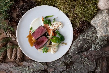 Сбор гостей у костра, отдаем честь добытой птице (лесной оркестр),